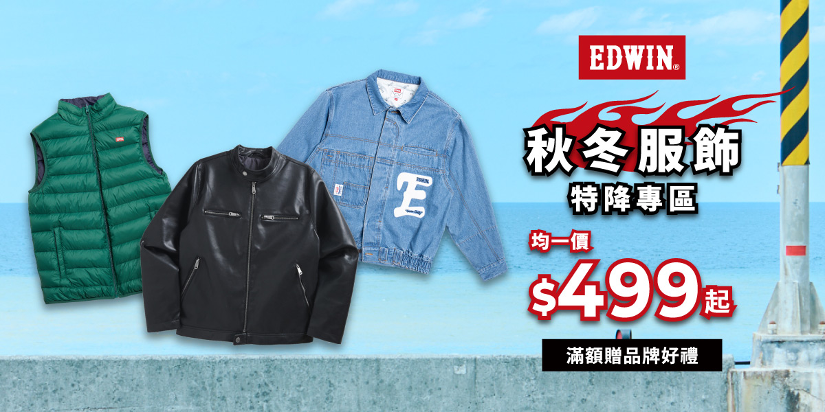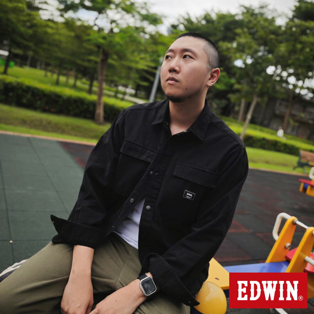 EDWIN 男款 短袖半禪外套 (石洗藍)
