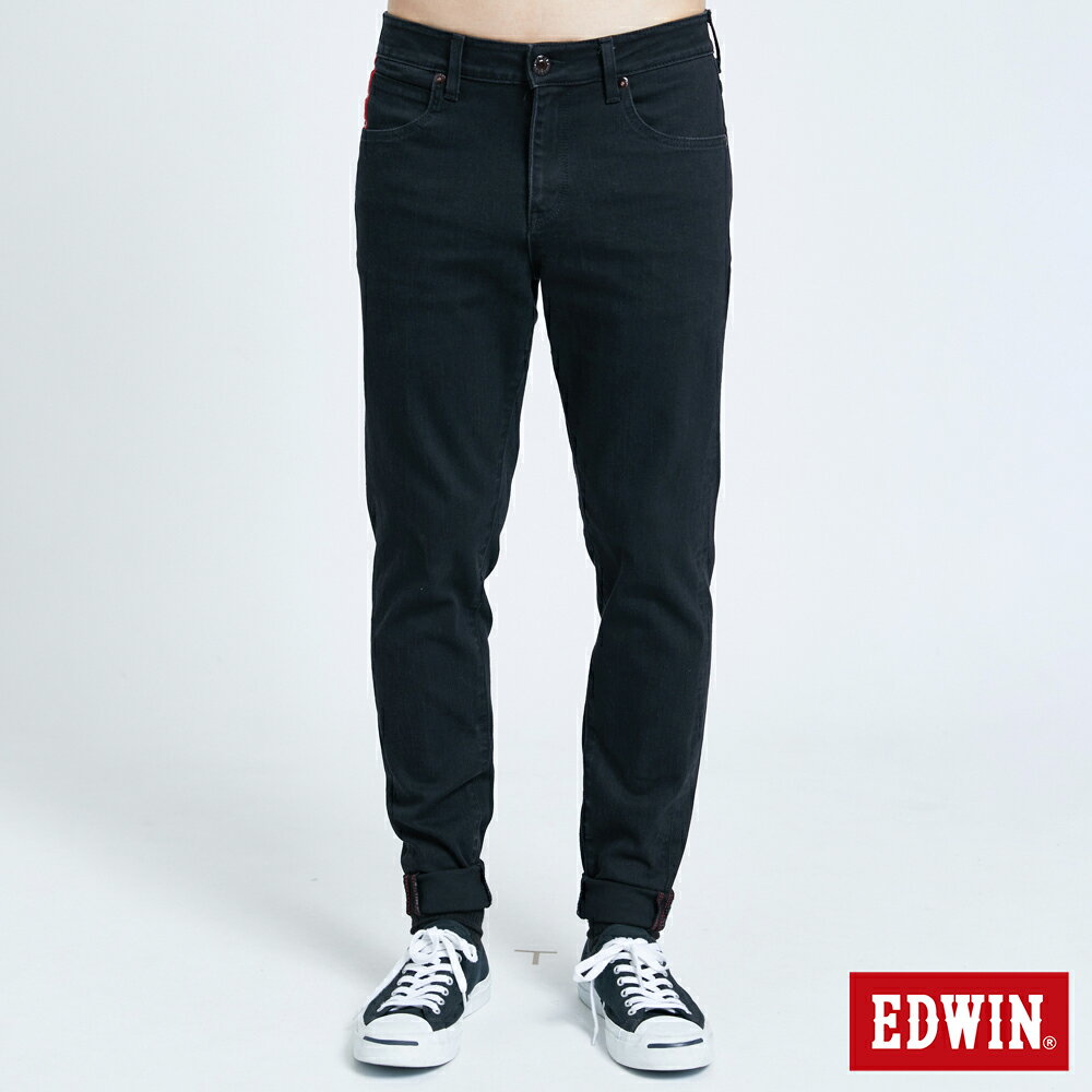 EDWIN 男款 EDGE 紅線緄皮丹寧錐形褲 (黑色)