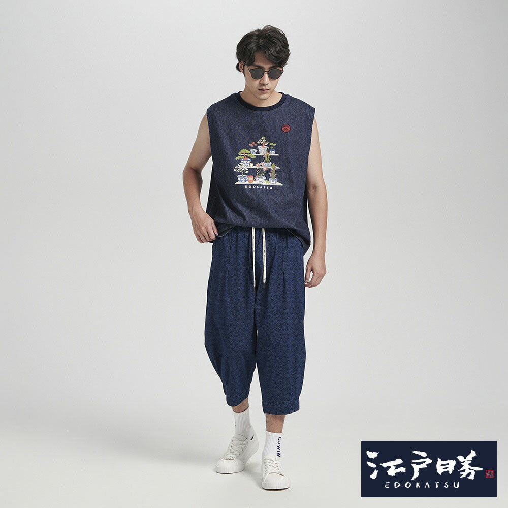 EDOKATSU江戶勝 男款 拼接布紋丹寧錐形束口褲 (原藍磨)